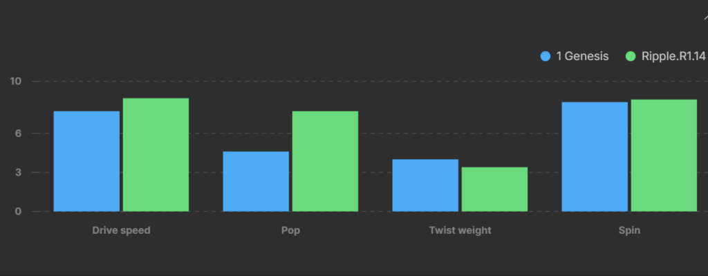 Here’s the organized comparison of the paddle attributes for CRBN Genesis Trufoam TF1 14mm and Ronbus Ripple R1 14mm